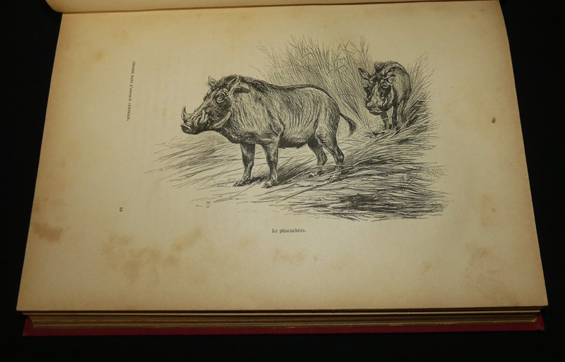 In-4, 27 x 18 cm., pleine toile d'éditeur rouge, tête d'éléphant dorée sur le premier plat, titre à l'or sur le premier plat et le dos, tranches dorées, photographie de l'auteur en frontispice, IV, 340 pages, gravures en noir in et hors texte ; petite usure des coins, mors légèrement blanchis, deux cahiers un peu décalés, bel exemplaire.