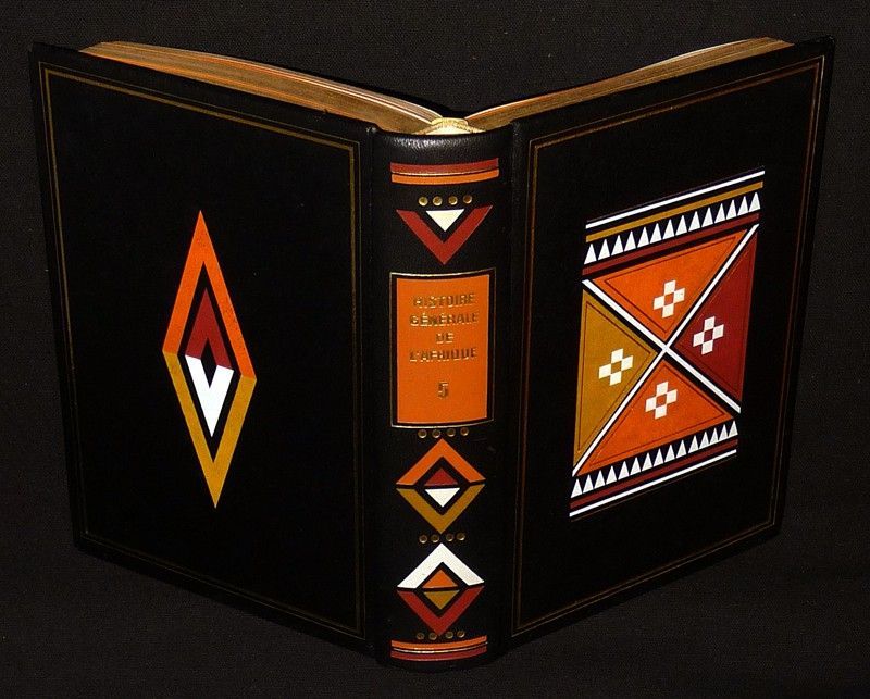 In-8 (15 x 21,5 cm), reliure simili cuir, motifs africains en couleurs au dos et aux plats, tête dorée, 553 pages, photographies en noir et blanc hors texte ; coins frottés, par ailleurs bel état général.