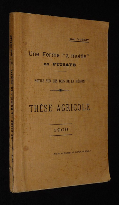 RARE. In-4 (16,8 x 25,5 cm), broché, 158 pages, envoi de l'auteur, thèse agricole ; rousseurs et quelques taches sur les plats, pliure au dos, par ailleurs assez bon état général.
