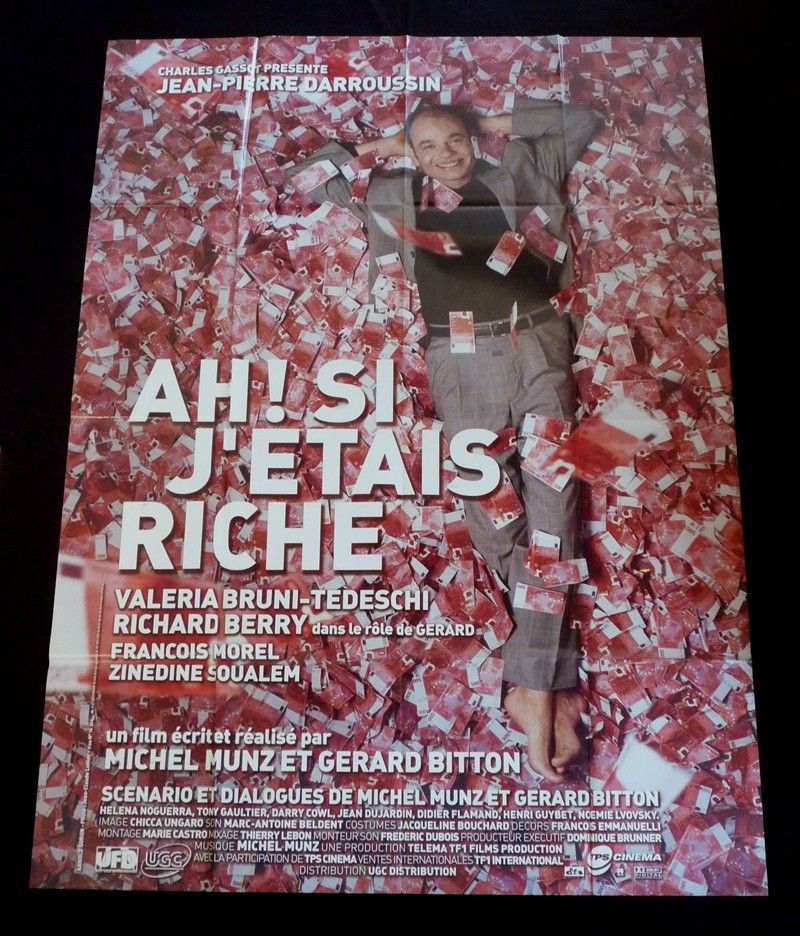 Affiche (env. 115 x 157 cm) du film Ah ! si j'étais riche (2002) réalisé par Michel Munz et Gérard Bitton ; quelques traces de peinture au verso de l'affiche, par ailleurs bon état général.