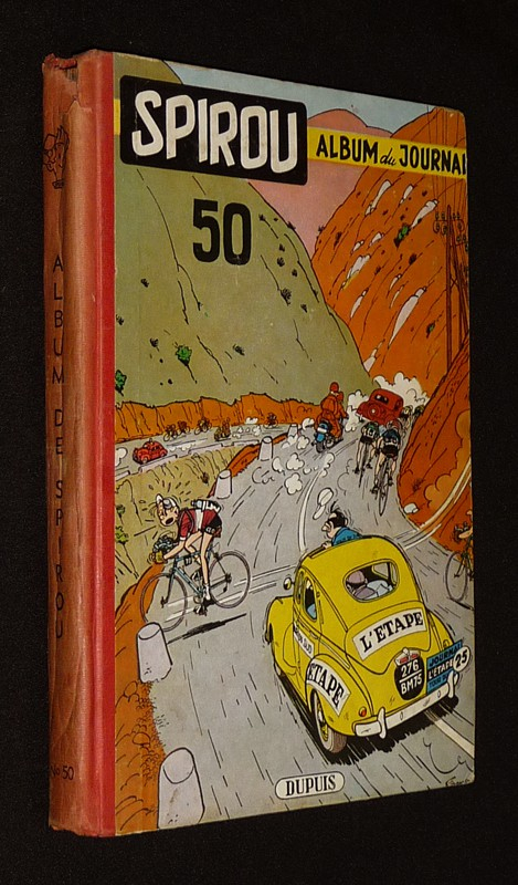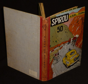 In-4 (20 x 28,5 cm), album cartonné, 1er plat illustré, album n°50 du journal Spirou, comprenant les numéros 847 (8 juillet 1954) à 859 (30 septembre 1954) ; un petit manque coiffe supérieure, bon état général.