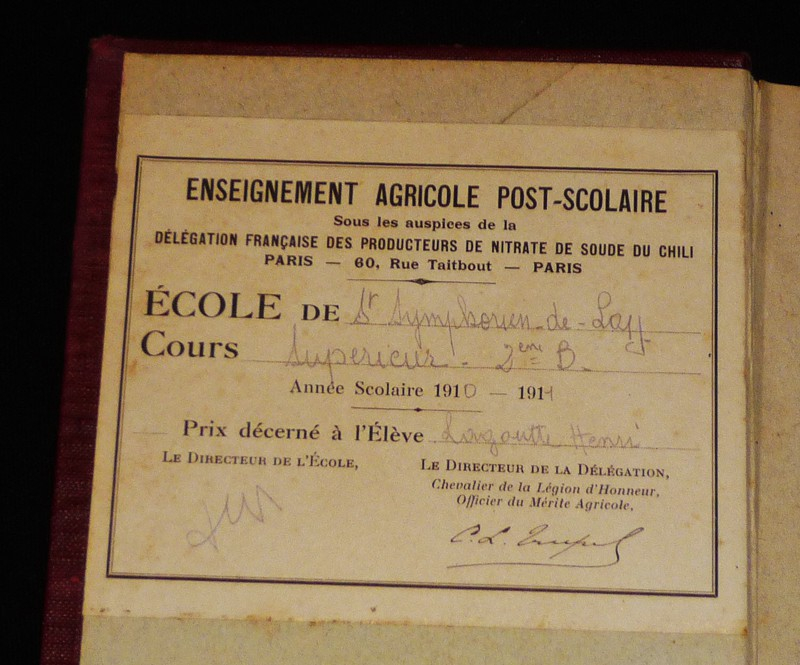 In-8 (15 x 22,5 cm), cartonné, 191 pages, complet de la carte dépliante, exemplaire offert par la délégation française des producteurs de nitrate de soude au Chili, prix au 2e plat, reçu dans le cadre de l'enseignement agricole post-scolaire ; coupes frottées, manques aux coiffes, déchirure sans manque au mors inférieur et au dos, papier bruni, par ailleurs assez bon état général.