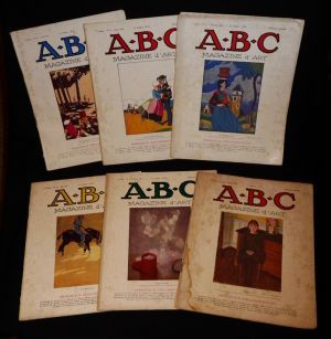 In-4 (22 x 28 cm), dos agrafé, lot de 6 numéros de la revue "ABC Magazine d'art" : n°12, décembre 1925 // n°13, janvier 1926 // n°16, avril 1926 // n°22, octobre 1926 // n°25, janvier 1927...
