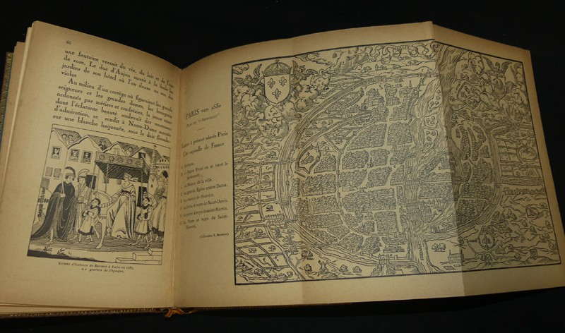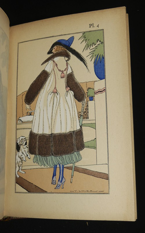Cartonnage toile de l'éditeur in-12°, impressions à froid, page de garde moirée, sur beau papier, 157 pages, gravures couleur (12) ou noir et blanc, trois planches dépliantes, historique de la rue Saint-Honoré et des fourreurs "Reine d'Angleterre" est le nom de la maison qui offre cette almanch à ses clients ; mors, coiffes et coins légèrement usé, bon état.