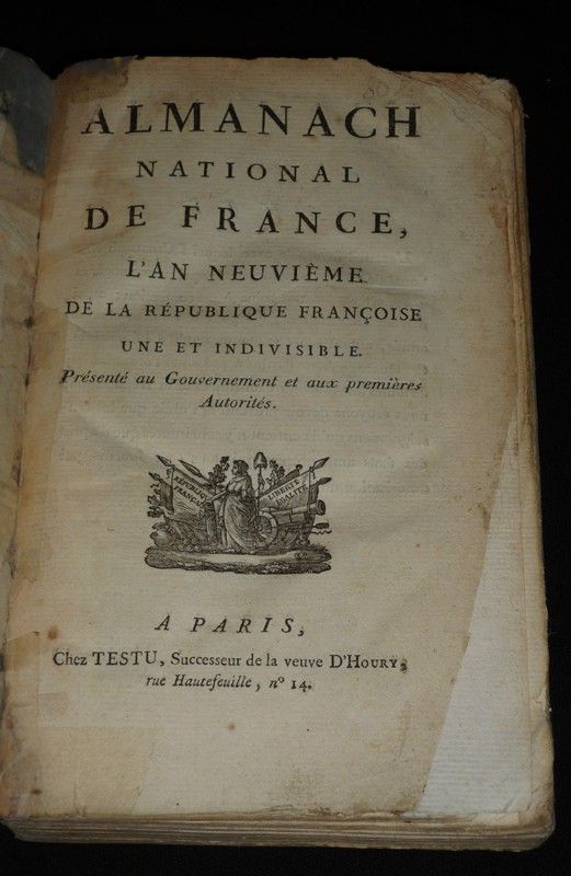Almanach national de France, l'an neuvième de la République Françoise, une et indivisible. Présenté au Gouvernement et aux premières Autorités