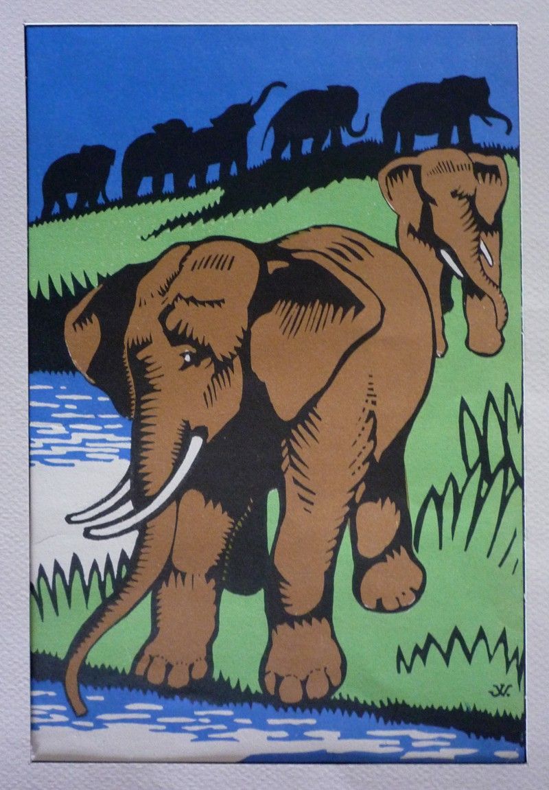 Illustration en couleurs (47,5 x 28 cm) d'Hélène Cuertik, tirée d'un album du Père Castor, édité par Flammarion ; réparation sur la pliure centrale en queue, quelques traces et marques...