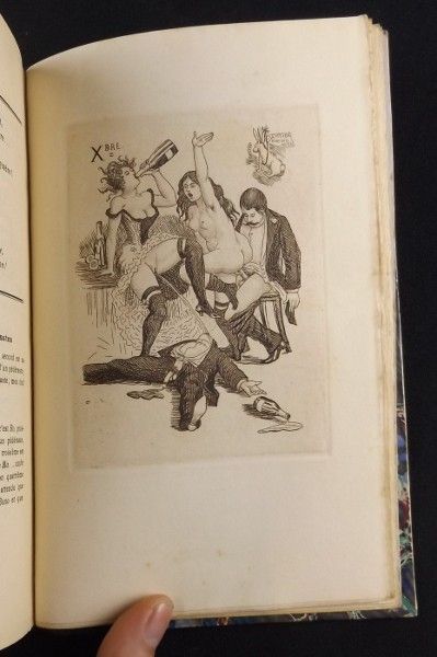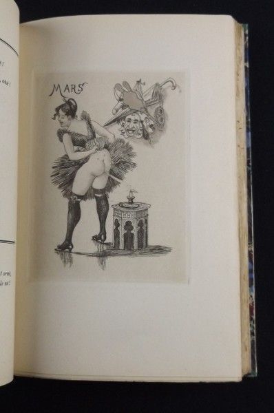 EDITION ORIGINALE. PEU FRöQUENT. Petit in-8 (13,5 x 20,5 cm.), relié demi-basane noir, cinq nerfs au dos, titre doré au dos, gardes racinées, couverture conservée. 204 pages, auteur et éditeur ("Foutropolis, aux dépens du père Dupanloup") anonymes dans l'ouvrage, douze eaux-fortes libres hors-texte, soit une pour illustrer chaque mois, sans date (in fine 1924), filets en haut de page, Dutel 1828.