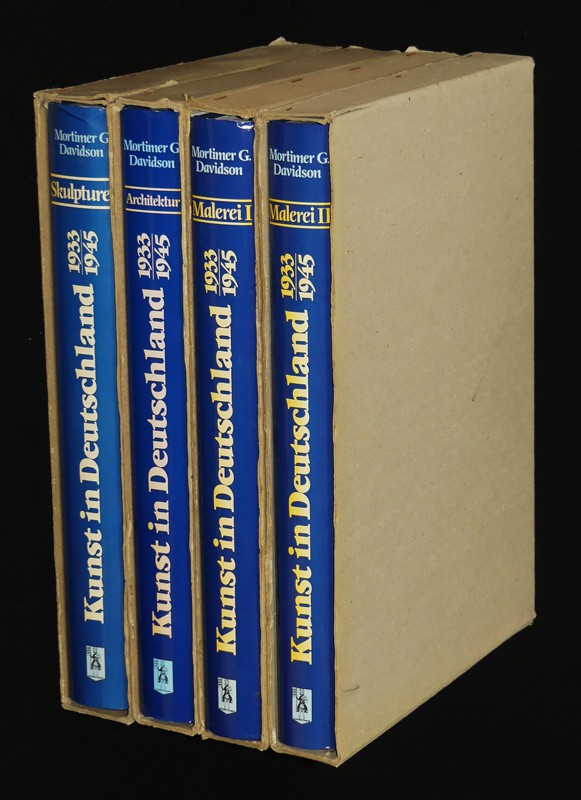 Quatre volumes in-4 (24,5 x 33,5 cm), cartonnés avec jaquette sous emboîtages, 500 à 650 pages par volume, texte en allemand, photos et reproductions en couleur et noir et blanc, titre complet : Kunst in Deutschland, 1933-1945. Eine wissenschaftliche Enzyklopädie der Kunst im Dritten Reich. Band 1 : Skulpturen
