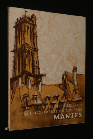 Aquarelle originale de Vaubourg : ville et pont sur une rivière