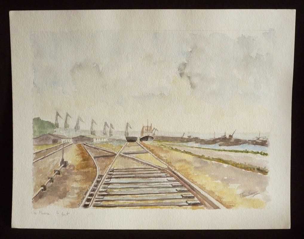 Aquarelle originale signée Vaubourg (34 x 24,5 cm sur support 40,8 x 31,8 cm), représentant les bords de Loire ; légère pliure au centre, par ailleurs bel état....