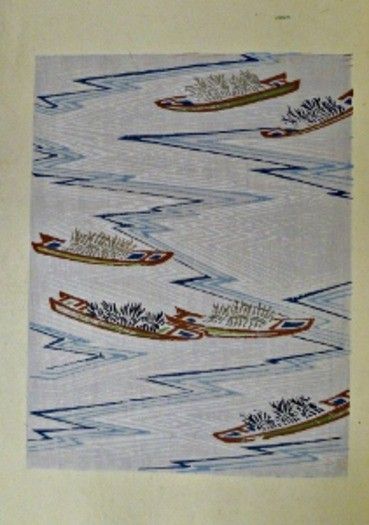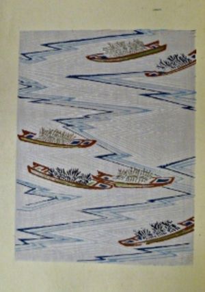 Magnifique publication in-8 (16,5 x 24 cm), en tissu. Sans date (vers 1920). Brochage japonais, couverture sur fond bleu outremer avec larges et belles zones rose pour le texte, proposant 20 magnifiques impressions sur tissu, en couleurs, catalogue servant à choisir le tissu dans lequel les tailleurs japonais réalisaient les kimonos. Très bel état de conservation.