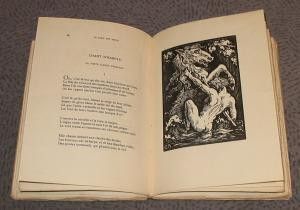 Grand in-4 relié, cartonné avec papier parchemin, sous emboîtage. Dos travaillé à la manière des livres anciens, avec titre et dessin en couleurs. Tête dorée. Ouvrage illustré de bois...