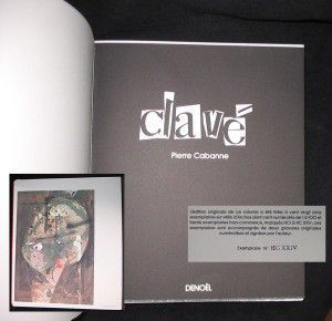 In-4 en feuilles sous chemise et emboîtage toilé rouge, ÉDITION ORIGINALE de ce magnifique ouvrage consacré à Clavé, tirage total à 125 exemplaires numérotés sur vélin d'Arches, le nôtre est un des 25 exemplaires Hors-Commerce (n° HC XXIV), l'ouvrage propose 127 reproductions d'oeuvres de Clavé, de grande qualité, dont 27 en couleurs, l'impression étant parfois faite sur fond noir, et toujours avec un très grand soin, notre exemplaire est bien accompagné des DEUX GRAVURES ORIGINALES sous chemise (68 x 52 cm), tirées à 25 exemplaires NUMÉROTÉS et SIGNÉS par CLAVÉ, RARISSIME, MAGNIFIQUE, le tout en PARFAIT ÉTAT.