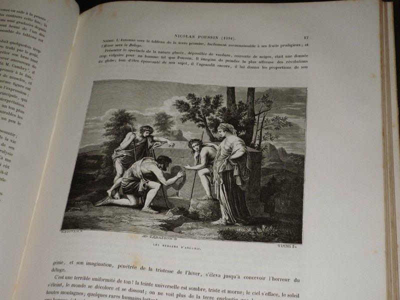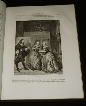 In-4 (27 x 35 cm), rare percaline romantique, paginations multiples, gravures en noir reproduisant un choix des plus beaux tableaux des écoles française, flamande et hollandaise, avec portraits, monogrammes, etc., extrait de l'Histoire des peintres de toutes les écoles par M. Charles Blanc ; coiffes et coins frottés, ors un peu passés au dos et au premier plat, des rousseurs à l'intérieur, par ailleurs assez bon état.