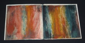 In-8 (19,3 x 19,8 cm), feuilles sous couverture à rabats, non paginé, EDITION ORIGINALE, 1 de 40 exemplaires, non numéroté (seul tirage à part quelques exemplaires hors commerce), peint à la main à même le livre par Catherine Cacquevel. (tous les exemplaires sont différents, même très différents) ; très bon état.