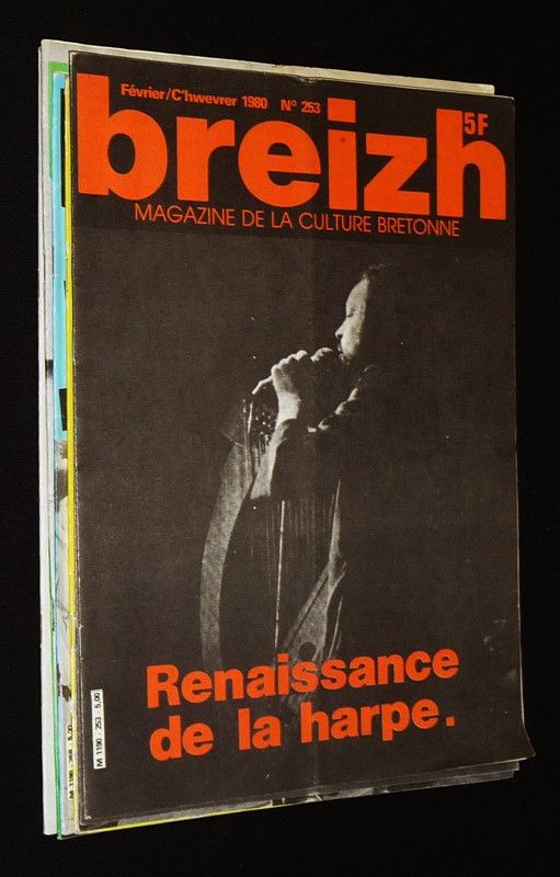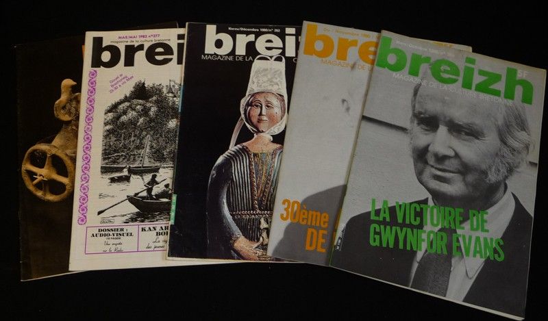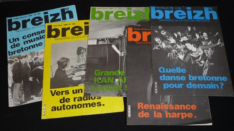 In-4 (21 x 30 cm), revue dos agrafé, lot de 10 numéros de "Breizh, magazine de la culture bretonne" : n°253 (février 1980) // n°254 (mars 1980) // n°255 (avril 1980) // n°256 (mai 1980) // n°258 (juillet 1980) // n°260 (octobre 1980) // n°261 (novembre 1980) // n°262 (décembre 1980) // n°277 (mai 1982) // n°333, été 1988) ; légère pliure au centre et quelques marques d'usage sur l'ensemble des numéros, par ailleurs bon état général.