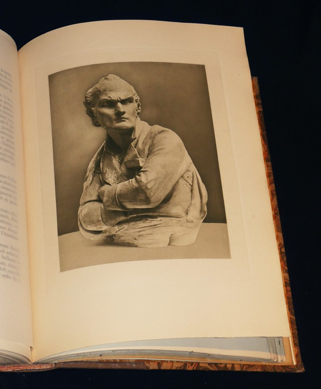 Deux forts volumes in-4° relié demi-toile, (25 * 33 cm), couvertures et dos conservées, tirage unique à été tire à 600 exemplaires, soit 50 exemplaires de tête sur japon impérial puis 550 exemplaires sur papier velin pur fil de Rives, ici le numéro 147, préface de Camille Mauclair, 246 et 310 pages, frontispice (portrait de Houdon gravé par Achille Ouvré) et 54 reproductions hors-texte dans le premier volume (Les reproductions sont protégées par une serpente portant le titre de la sculpture ainsi que le lieu où elle est conservée), dans le deuxième volume on trouve un frontispice (portrait par Carle Van Loo) et 59 reproductions hors-texte ; bon exemplaire de cette somme publiée à peu d'exemplaire, ici reliée simplement, toiles très légèrement tachées, intérieur très frais.