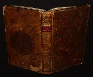 In-8 (13 x 20,5 cm), reliure plein veau, dos lisse orné de dorures, liseré d'encadrement doré aux plats, 400 pages, édition originale du "Cours théorique et pratique sur l'art de la teinture en laine, soie, fil, coton, fabrique d'indiennes en grand et petit teint, suivi de l'Art du teinturier dégraisseur et du blanchisseur, avec les expériences faites sur les végétaux colorans" ; coins usés, épidermures et quelques traces sur le cuir, mors un peu abîmés aux coiffes, zone plus sombre au quatrième plat, quelques traces et rousseurs à l'intérieur, par ailleurs assez bon état général.