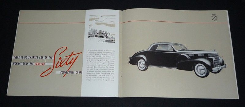 In-4 (28 x 22,8 cm), dos agrafé sous enveloppe, 12 pages, plaquette de présentation de la Cadillac Sixty, texte en anglais, illustrations en noir ; dos frotté, par ailleurs bon état.