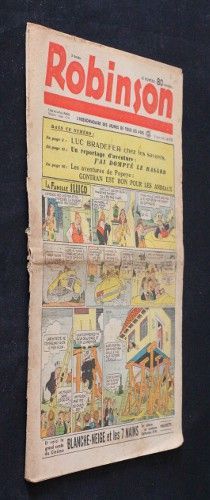In-4 (27x38 cm), journal illustré, 'Robinson', 'hebdomadaire des jeunes de tous les âges', n°118, 31 juillet 1938 (3e année) ; dos frotté, rares petites déchirures sur les bords, quelques rousseurs sur les pages jaunies, assez bon état.