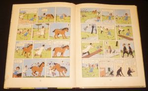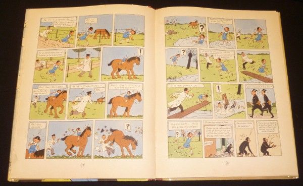In-4 (23 x 30,5 cm.), album cartonné, dos papier rouge, 4° plat B5, 52 pp., vignettes couleurs, côte BDM à 250â?¬ ; il y a 1 déchirure avec manque en bas de la page 1 (ne gêne pas la lecture), bords, coins et coiffes frottés, plats légèrement défraîchis, intérieur frais, bon état.
