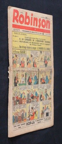 In-4 (27x38 cm), journal illustré, 'Robinson', 'hebdomadaire des jeunes de tous les âges', n°89, 9 janvier 1938 (3e année) ; dos frotté, une petite déchirure sur le bord, quelques rousseurs sur les pages jaunies, assez bon état.