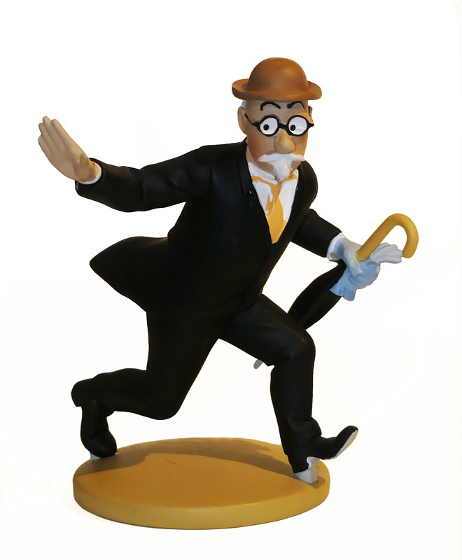 Aristide Filoselle, le voleur de portefeuilles' de l'album Le Secret de la Licorne. Figurine en résine polychrome (hauteur 11 cm, largeur 9 cm, diamètre du socle 6 cm), bien complète du passeport numéroté et du livret explicatif accompagnant chaque figurine ; sans défaut. En raison de la fragilité de ces figurines, nous ne pouvons pas les expédier, il faudra les retirer à la librairie Le Seanachi, 7 rue du faubourg Bertault à Bécherel. Merci donc de choisir l'option "retrait sur place" au moment de votre commande.