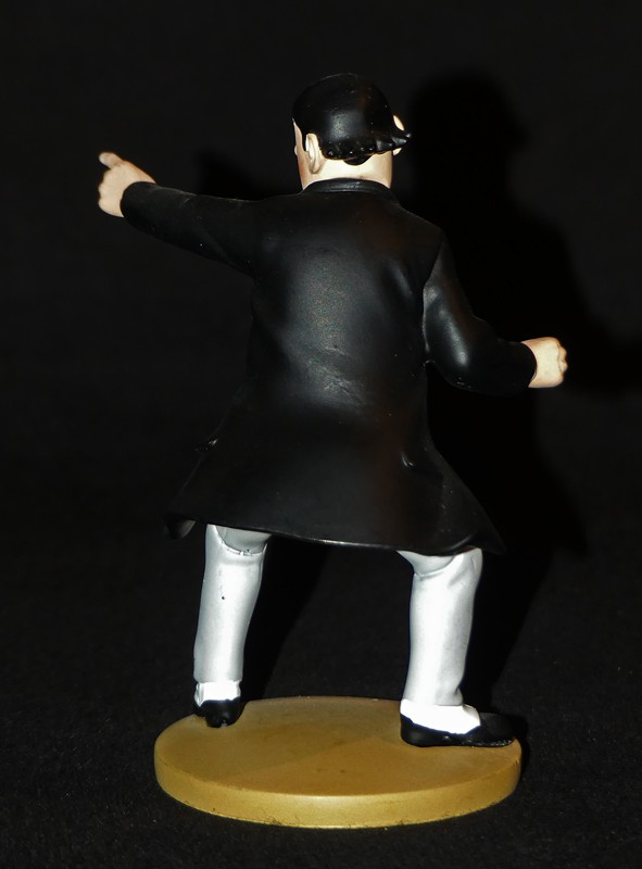 Le Docteur Müller incendiaire' de l'album L'île Noire. Figurine en résine polychrome (hauteur 12 cm, largeur 6 cm, diamètre du socle 6 cm), bien complète du passeport numéroté et du livret...