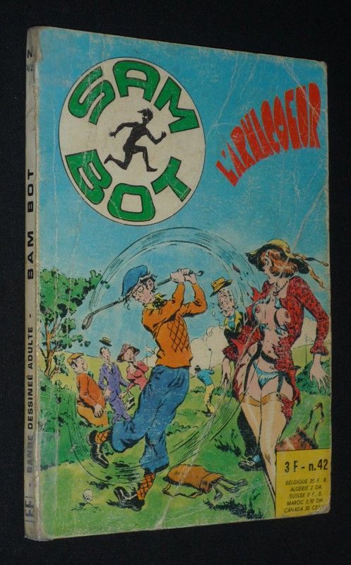 In-12 (12,7 x 17,7 cm), dos carré collé, 113 pages, sans date, BD pour adultes ; pliures au premier plat, réparation au ruban adhésif au dos en queue, traces au quatrième plat, gribouillage au stylo sur la page de titre, par ailleurs intérieur frais, en l'état.