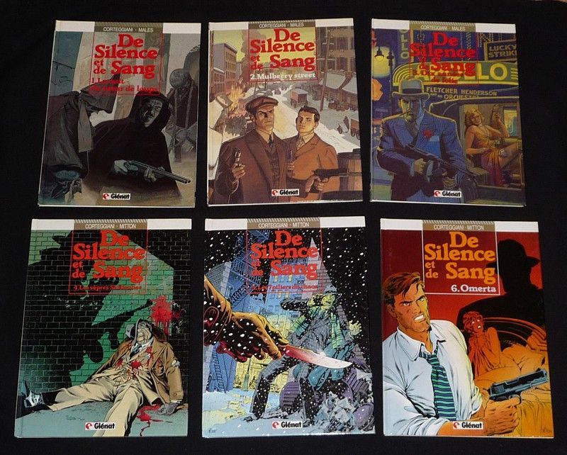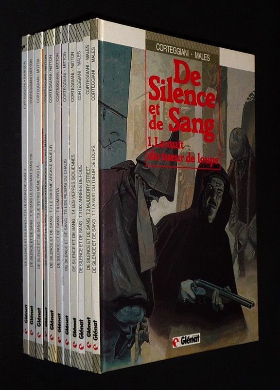 Onze volumes in-4 (21,5 x 29,2 cm), albums cartonnés, tomes 1 à 11 de la série "De silence et de sang" en édition originale (1986-1998) : 1. La Nuit du tueur de loups // 2. Mulberry Street // 3. Dix années de folie // 4. Les Vêpres siciliennes // 5. Les piliers du chaos // 6. Omerta // 7. Le Dixième arcane majeur // 8. Les 4 provinces de l'Ave Maria // 9. Je n'étais même pas là // 10. Dans le courant sans fin // 11. Le Sceau de Caïn, Tome 1 ; dos du tome 7 un peu insolé en tête et en queue, par ailleurs très bon état général.