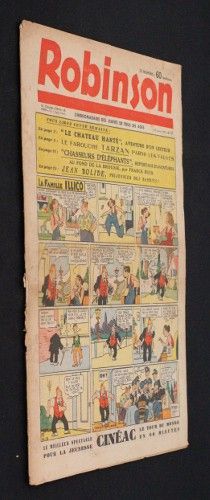 In-4 (27x38 cm), journal illustré, 'Robinson', 'hebdomadaire des jeunes de tous les âges', n°37, 10 janvier 1937 (2e année) ; dos légèrement frotté, rousseurs sur les pages jaunies, assez bon état.