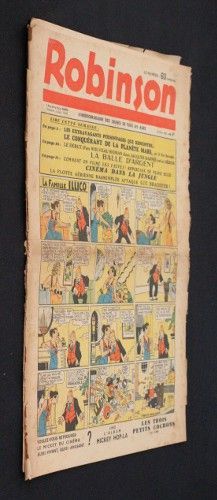 In-4 (27x38 cm), journal illustré, 'Robinson', 'hebdomadaire des jeunes de tous les âges', n°47, 21 mars 1937 (2e année) ; dos frotté et déchiré, quelques rousseurs sur les pages jaunies, petites déchirures sur les bords, état correct.