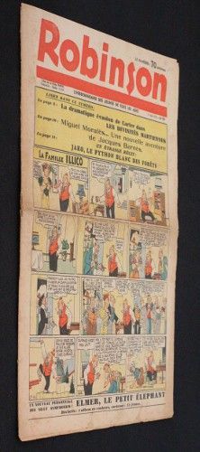 In-4 (27x38 cm), journal illustré, 'Robinson', 'hebdomadaire des jeunes de tous les âges', n°66, 1er août 1937 (2e année) ; dos frotté, quelques rousseurs sur les pages jaunies, assez bon état.