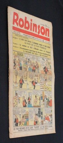 In-4 (27x38 cm), journal illustré, 'Robinson', 'hebdomadaire des jeunes de tous les âges', n°69, 22 août 1937 (2e année) ; dos frotté et en partie déchiré, quelques rousseurs sur les pages jaunies, assez bon état.