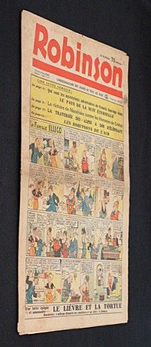 In-4 (27x38 cm), journal illustré, 'Robinson', 'hebdomadaire des jeunes de tous les âges', n°70, 29 août 1937 (2e année) ; dos frotté, quelques rousseurs sur les pages jaunies, une tache noire au premier plat, assez bon état.