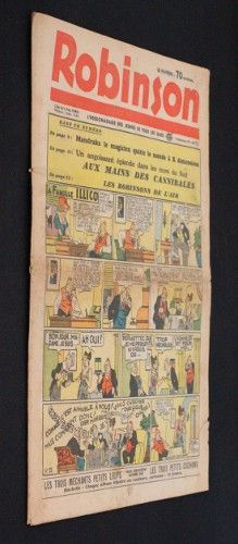 In-4 (27x38 cm), journal illustré, 'Robinson', 'hebdomadaire des jeunes de tous les âges', n°72, 12 septembre 1937 (2e année) ; dos frotté, quelques rousseurs sur les pages jaunies, une déchirure au bord, assez bon état.