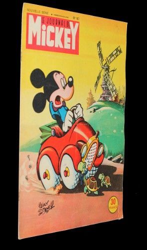 In-4 (23.5x31 cm), broché deux agrafes, couverture illustrée, Le journal de Mickey n°167, 15 pages ; dos frotté, bel état.