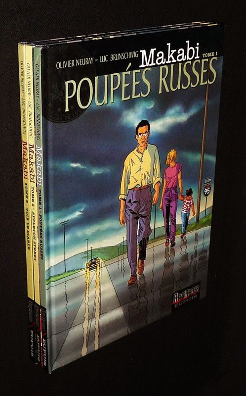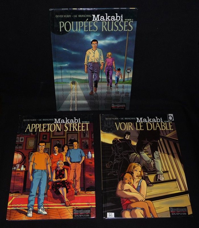 Trois volumes in-4 (21,7 x 30 cm), albums cartonnés, les trois premiers tomes de la série "Makabi" : T1 : Poupées russes (2002) - T2 : Appleton Street (2003) - T3 : Voir le diable (2005) ; frottements aux plats, petit tampon au début du tome 3, par ailleurs assez bon état.