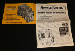 In-folio (29,5 x 42 cm), album de bande dessinée sous forme de journal en feuilles, avec une demi-jaquette agrafée qui recouvre le journal plié en deux, complet des 3 numéros formant "Micmac moche au Boul'mich" ; bords des demi-jaquettes insolés, par ailleurs bel état.