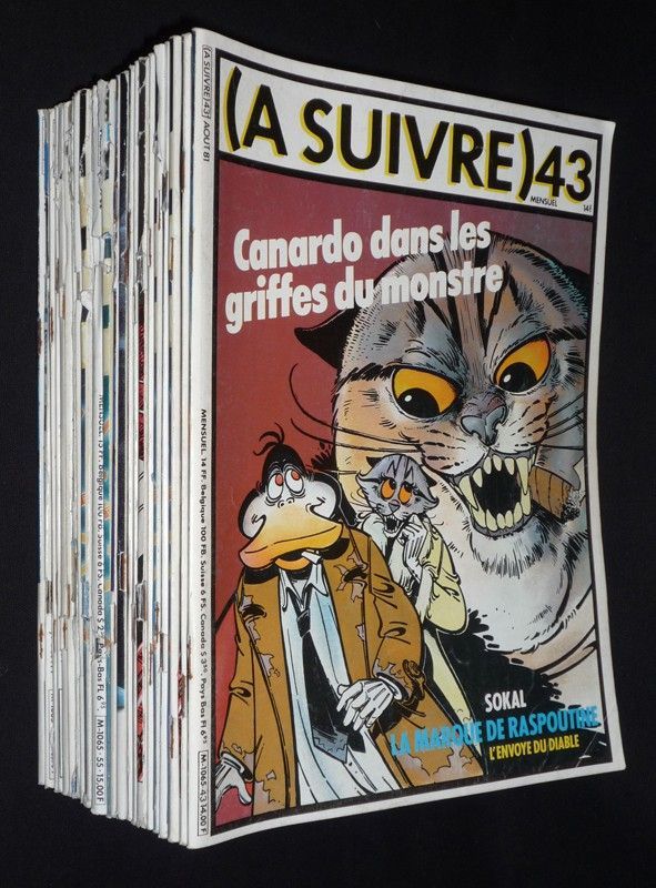 In-4 (22,5 x 29,5 cm), dos agrafé, 23 numéros de la revue de bandes dessinées (A Suivre), du n°43 (août 1981) au n°65 (juin 1983) ; petites déchirures aux dos de certains numéros notamment aux agrafes, quatrième plat du n°59 manquant, corps d'ouvrage du n°64 détaché de la couverture, par ailleurs assez bon état.