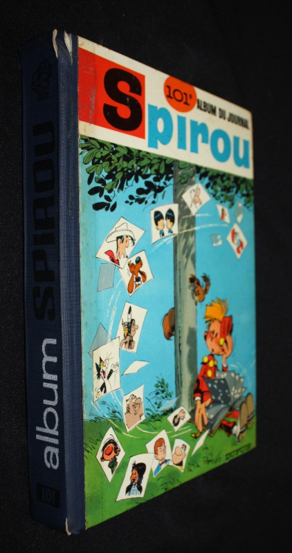 In-4 (21 x 27,5 cm), album cartonné, 1er plat illustré, album n°101 du journal Spirou, comprenant les numéros 1460 à 1472 ; coiffes fendues, des feuillets au brochage lâche, petits manques papier sur les coins et les coupes, bon état.