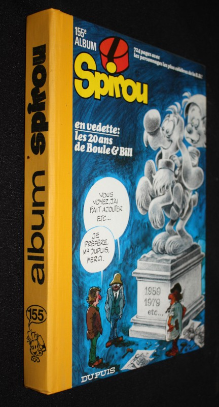 In-4 (20,7 x 27 cm), album cartonné, 1er plat illustré, album n°155 du journal Spirou, du n°2164 (4 octobre 1979) au 2176 (27 décembre 1979) ; un feuillet dé-relié, très bon état.