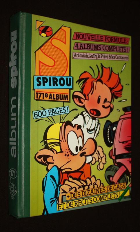 In-4 (20,7 x 27 cm), album cartonné, 1er plat illustré, album n°171 du journal Spirou, du n°2372 (29 septembre 1983) au 2381 (1er décembre 1983) ; très bel état.