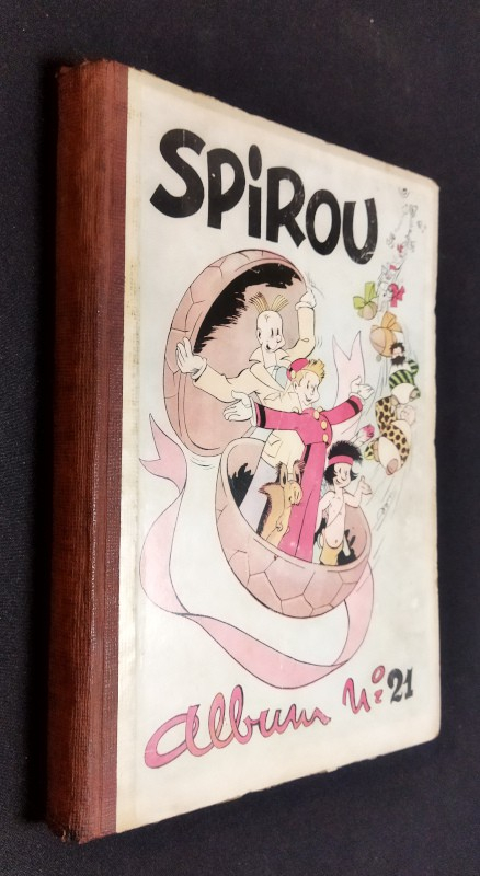 In-4 (20,5 x 29,5 cm), album cartonné, 1er plat illustré, album n°21 du journal Spirou, du n°455 (2 janvier 1947) au 471 (24 août 1947) ; menus défauts, bel exemplaire.