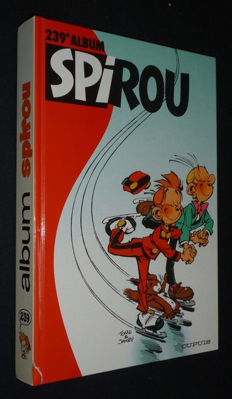 In-4 (20,7 x 29,8 cm), album cartonné, 1er plat illustré, album n°239 du journal Spirou, du n°3056 (6 novembre 1996) au 3065 (8 janvier 1997), avec lunettes 3D ; deux numéros fragilisés, un numéro désolidarisé, dos bruni, par ailleurs assez bon état.