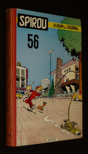 In-4 (19,7 x 28,5 cm), album cartonné, 1er plat illustré, album n°56 du journal Spirou, comprenant les numéros 925 (5 janvier 1956) à 937 (29 mars 1956) ; une petite fente en tête, sans...