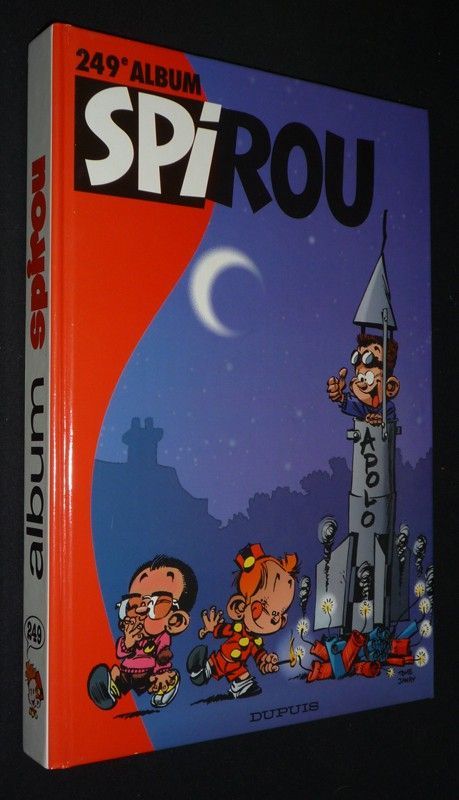 In-4 (20,7 x 29,8 cm), album cartonné, 1er plat illustré, album n°249 du journal Spirou, du n°3156 (7 octobre 1998) au 3165 (9 décembre 1998) ; très bon état.