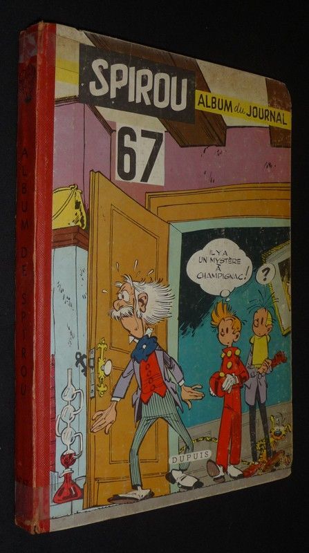 In-4 (20,3 x 29 cm), album cartonné, 1er plat illustré, album n°67 du journal Spirou, comprenant les numéros 1050 (29 mai 1958) à 1060 (7 août 1958) ; ruban adhésif au dos en tête et en queue, coupes usées, quelques marques d'usage au premier plat, un numéro désolidarisé, assez bon état général.