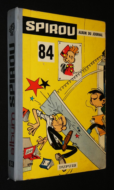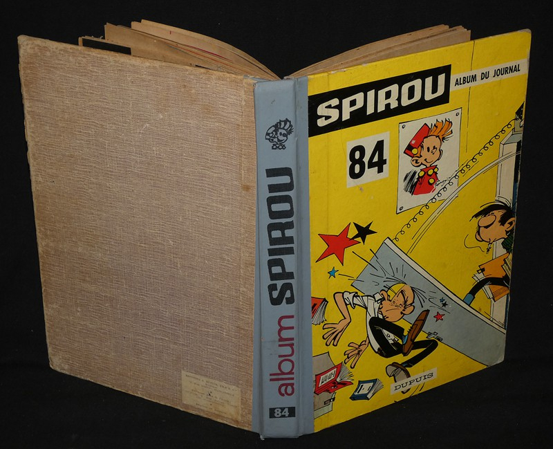 In-4 (20 x 29 cm), album cartonné, 1er plat illustré, album n°84 du journal Spirou, comprenant les numéros 1238 à 1250, suppléments ; quelques feuillets décalés, coupes usées, bon état.