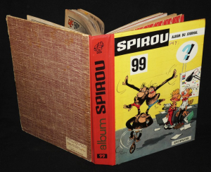 In-4 (20,5 x 27,2 cm), album cartonné, 1er plat illustré, album n°99 du journal Spirou, comprenant les numéros 1434 à 1446, ne contient pas les mini-récits ; menus défauts, bon état.